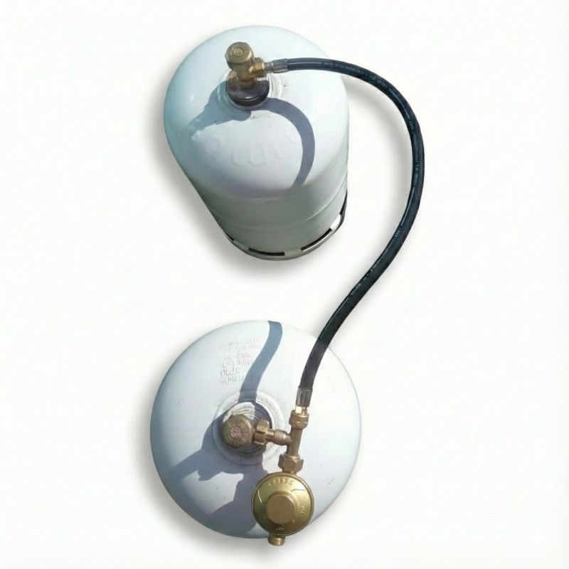 kit de couplage 2 bouteilles de gaz, lyre 70 cm + T + détendeur propane 50mbar 6kg/h