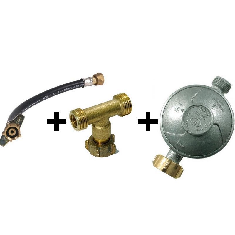 kit de couplage 2 bouteilles de gaz, lyre inox + T + détendeur propane 37mbar 6kg/h