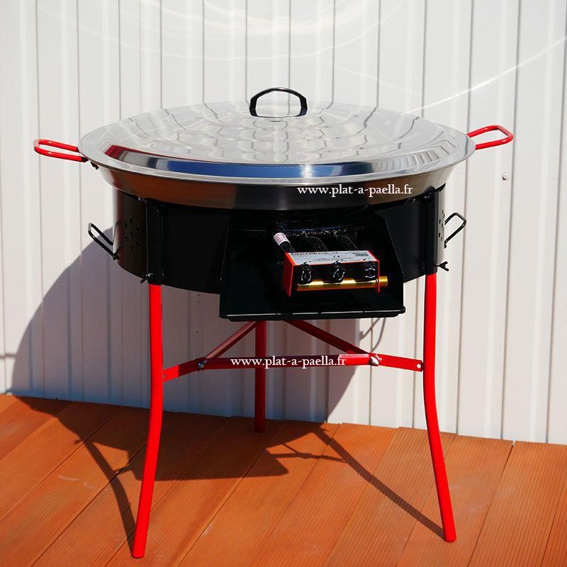 Kit à paella PRO - BBQ60 pour 40 personnes - Plat acier 80cm avec couvercle inox