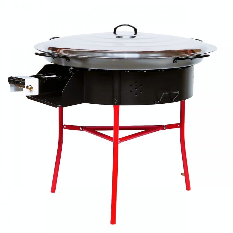 Cet équipement espagnol se compose d’une poêle en acier, d’un couvercle, d’un réchaud, d’un pare-flammes et d’un support renforcé.