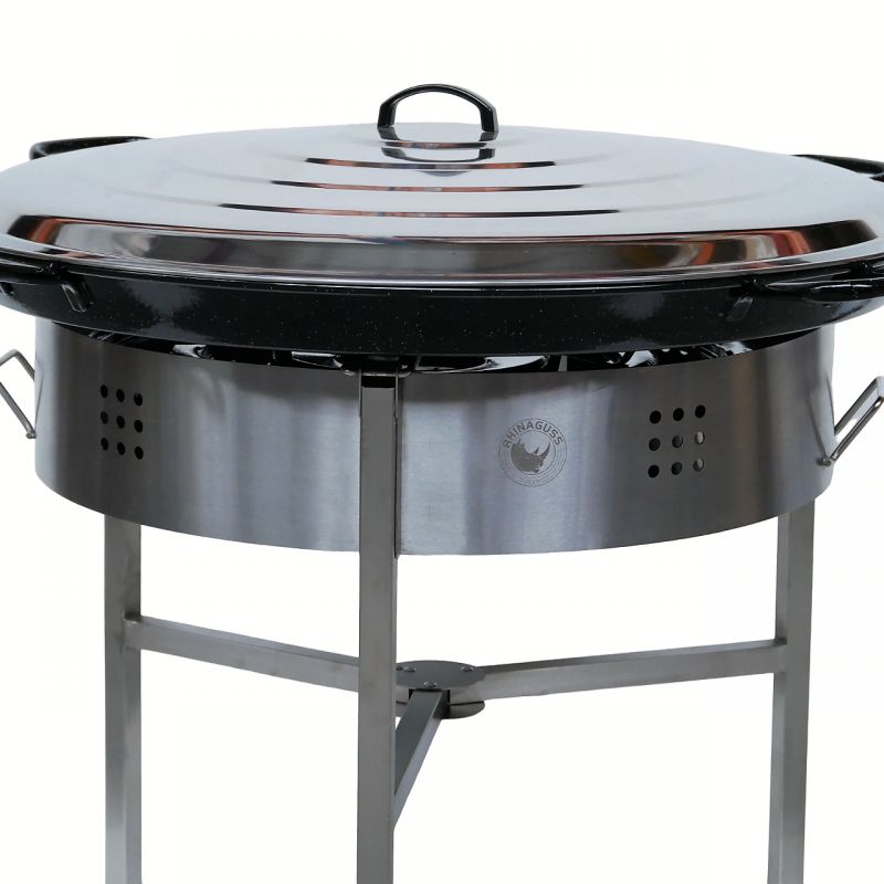 Kit à paella démontable pour 120 personnes avec plat en acier émaillé et couvercle en inox