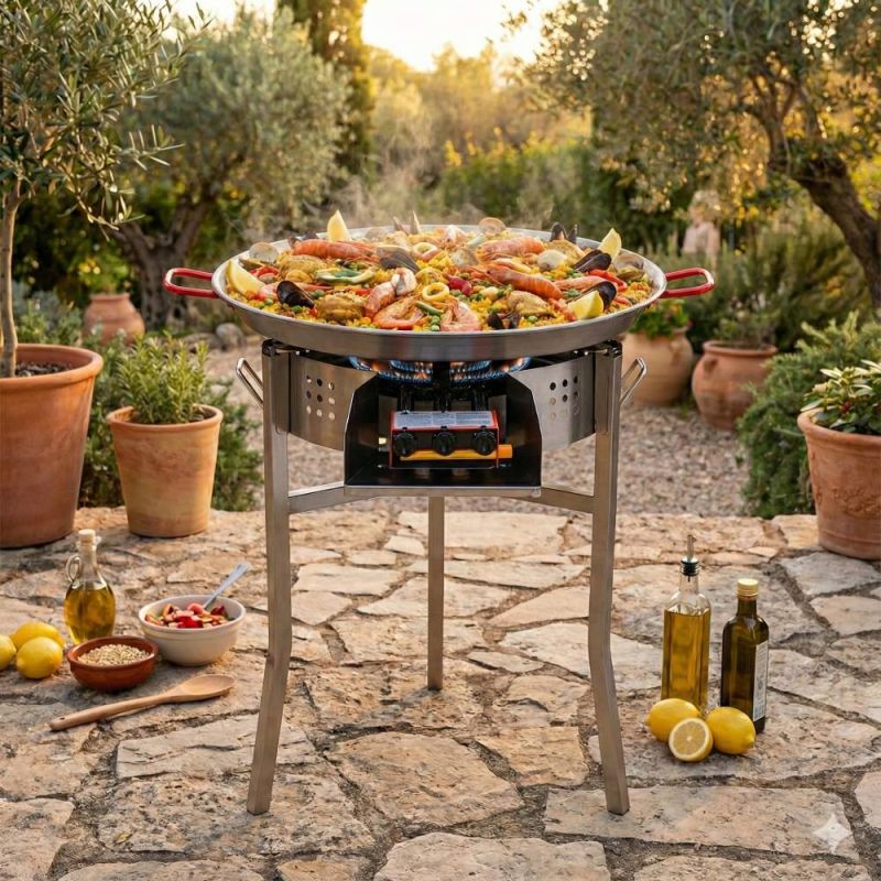 - Alimentation gaz Compatible butane / propane Tuyau et détendeur en option (28 / 37 mbar) Un kit haut de gamme pensé pour les passionnés de vraie paella : puissance, maîtrise du feu et tradition réunies pour des résultats dignes des grandes fêtes espagnoles.