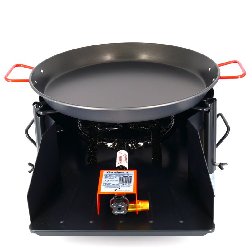 Set de cuisson complet pour préparer vos paellas géantes pour 10 à 12 personnes Ce kit Made in Espagna comprend une poêle à paella en anti adhérente et son couvercle, un réchaud avec une entrée à visser G1/2 mais aussi un trépied à roulettes et un plateau servant de desserte. L’excellente qualité des produits Garcima vous permet de vous équiper tel un...