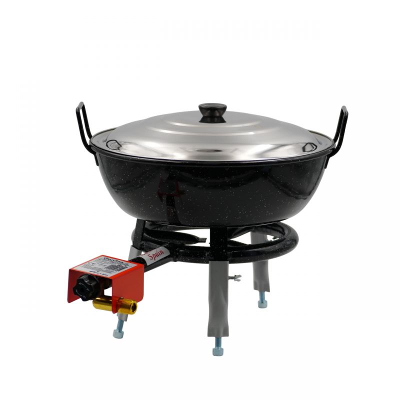 kit à poêle creuse 50 personnesCe kit comprend une poêle émaillée creuse de 28.75 litres, un réchaud à gaz (Entrée à visser : G1/2)Trépied au choix en optionTuyau de gaz, détendeur et couvercle en option. L'émail protège votre plat de l'oxydation. Même après une longue période sans utilisation, il sera comme neuf. ...