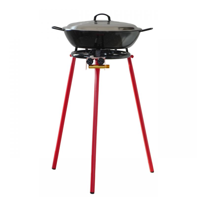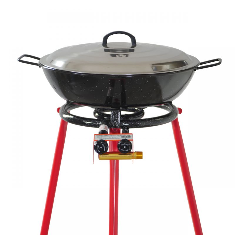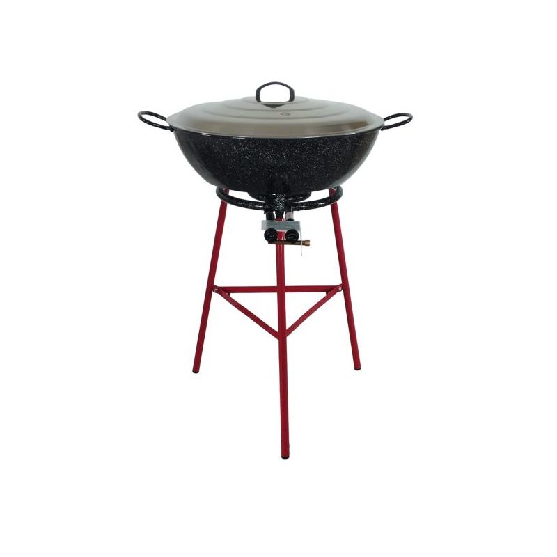 kit à poêle creuse 70 personnes Ce kit comprend une poêle émaillée creuse de 42.75 litres, un réchaud à gaz (Entrée à visser : G1/2) installé sur un trépied Tuyau de gaz, détendeur et couvercle en option. L'émail protège votre plat de l'oxydation. Même après une longue période sans utilisation, il sera comme neuf. Ce kit poêle creuse est conçu pour...