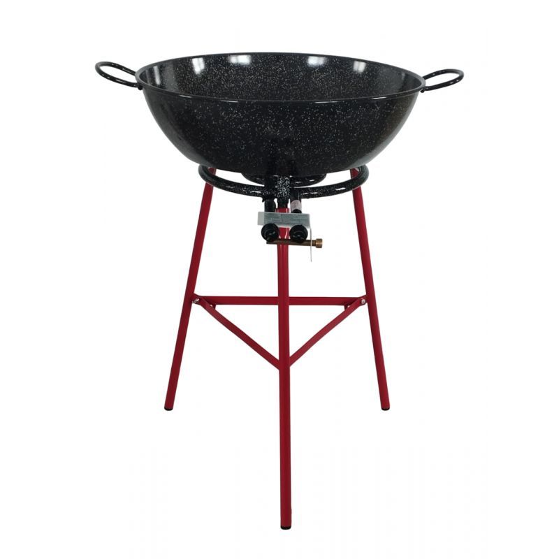 Ce kit comprend une poêle émaillée creuse de 28.75 litres, un réchaud à gaz (Entrée à visser : G1/2)
