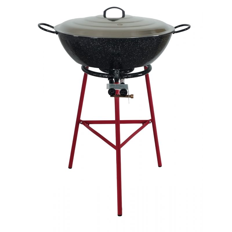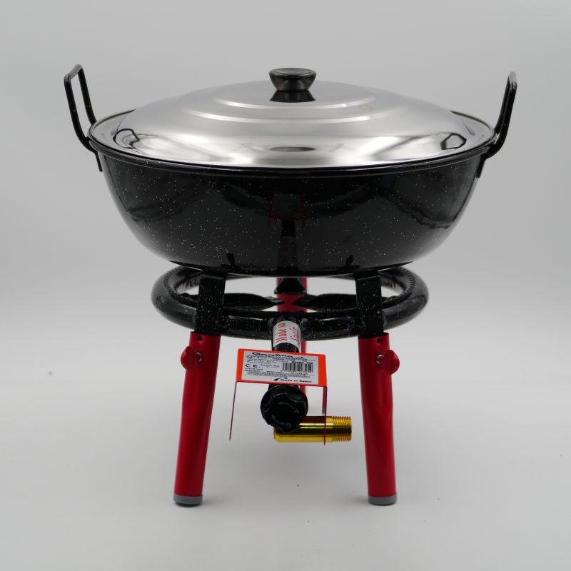 kit à poêle creuse 50 personnesCe kit comprend une poêle émaillée creuse de 28.75 litres, un réchaud à gaz (Entrée à visser : G1/2)Trépied au choix en optionTuyau de gaz, détendeur et couvercle en option. L'émail protège votre plat de l'oxydation. Même après une longue période sans utilisation, il sera comme neuf. ...