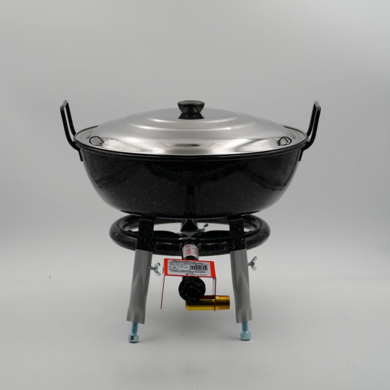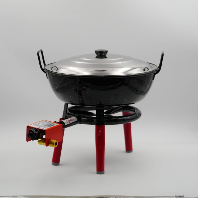 kit à poêle creuse 16 personnesCe kit comprend une poêle émaillée creuse de 8.9 litres, un réchaud à gaz (Entrée à visser : G1/2) installé sur un trépiedTuyau de gaz, détendeur et couvercle en option. L'émail protège votre plat de l'oxydation. Même après une longue période sans utilisation, il sera comme neuf. ...