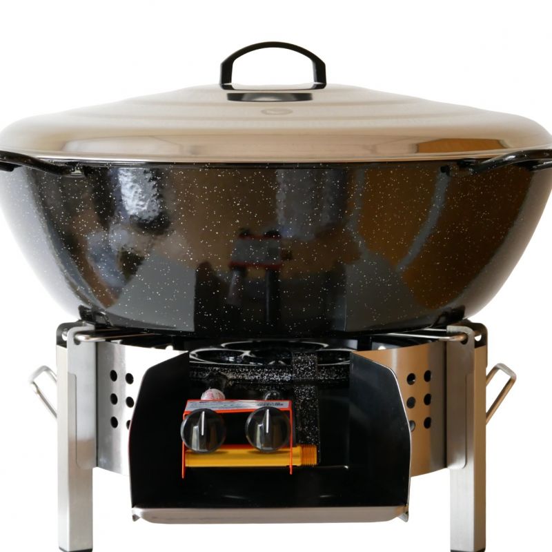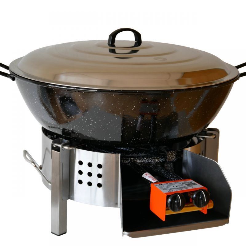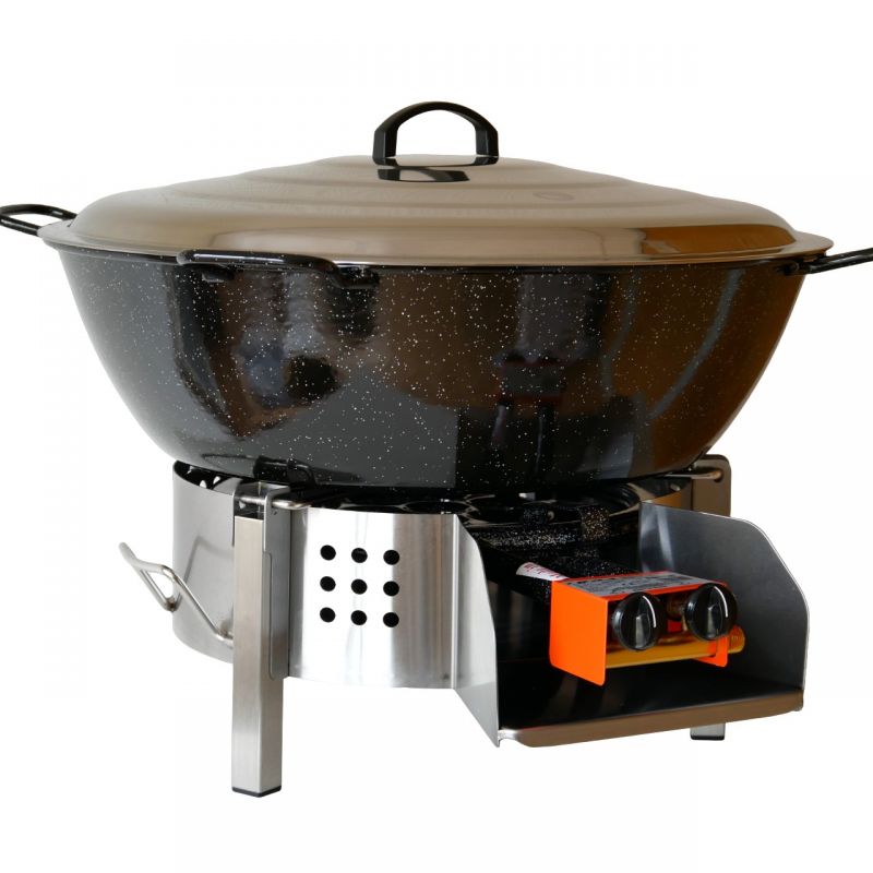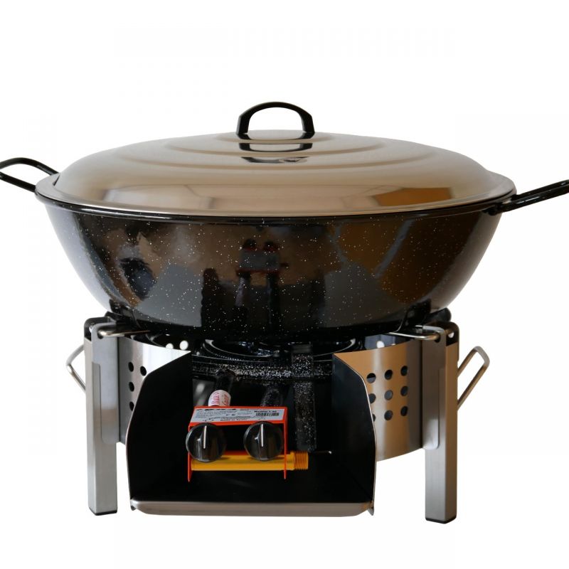 kit à poêle creuse 50 personnesCe kit comprend une poêle émaillée creuse de 28.75 litres, un réchaud à gaz (Entrée à visser : G1/2)Trépied au choix en optionTuyau de gaz, détendeur et couvercle en option. L'émail protège votre plat de l'oxydation. Même après une longue période sans utilisation, il sera comme neuf. ...