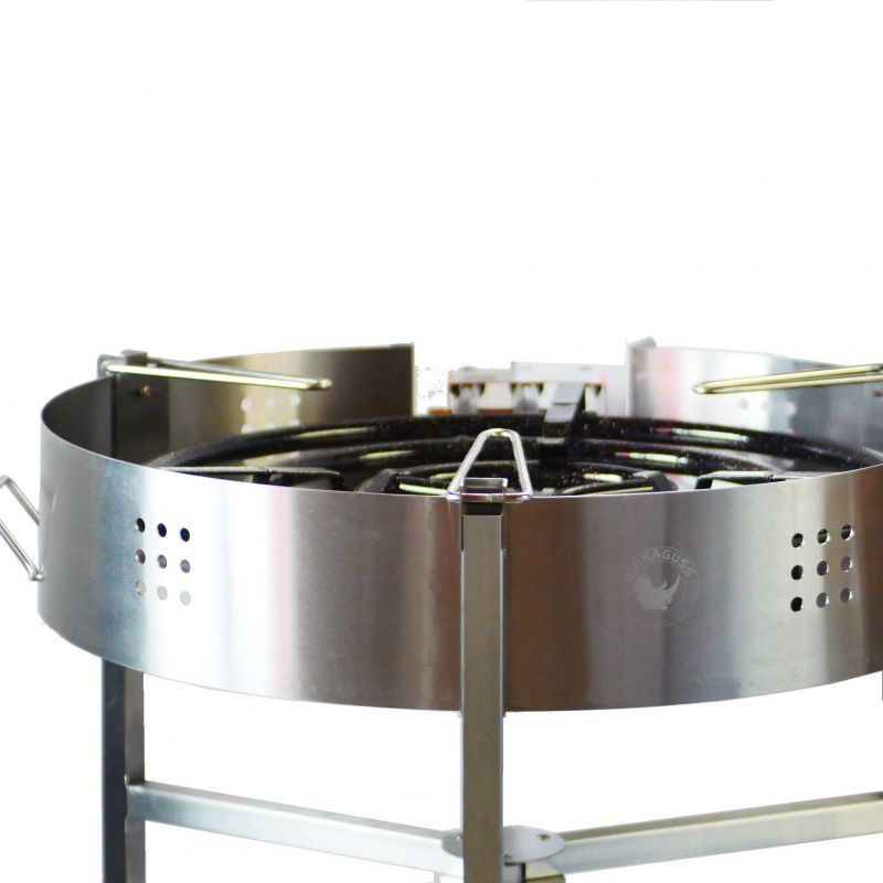 D'un diamètre exceptionnel de 100 cm, ce modèle déposé protège les plus grands brûleurs (80-90cm). Ses pieds démontables facilitent le transport pour les traiteurs.