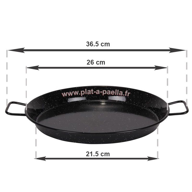 Plat à Paella émaillé pour environ 7 parts Diamètre haut du plat : 36cm Plat de cuisson rond spécialement conçu pour la cuisson de la paella. Equipé de 2 poignées latérales pour une bonne prise en main. Adaptée pour toutes les sources de gaz et pour le four. Ne rouille pas