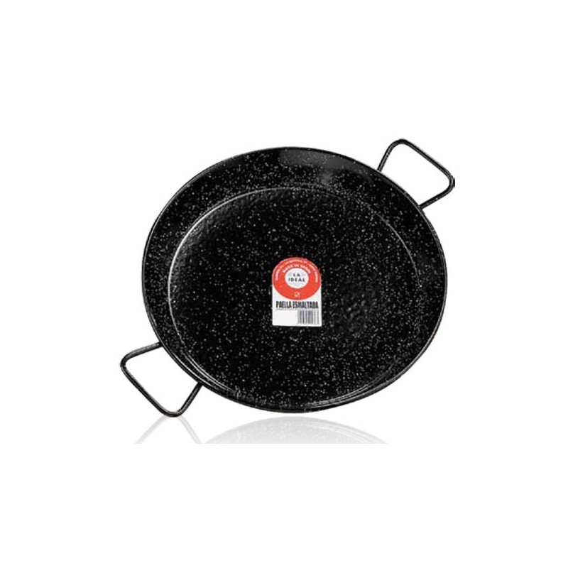Plat à Paella émaillé pour environ 8 partsDiamètre haut du plat : 38cmPlat de cuisson rond spécialement conçu pour la cuisson de la paella.Equipé de 2 poignées latérales pour une bonne prise en main.Adaptée pour toutes les sources de gaz et pour le four.Ne rouille pas