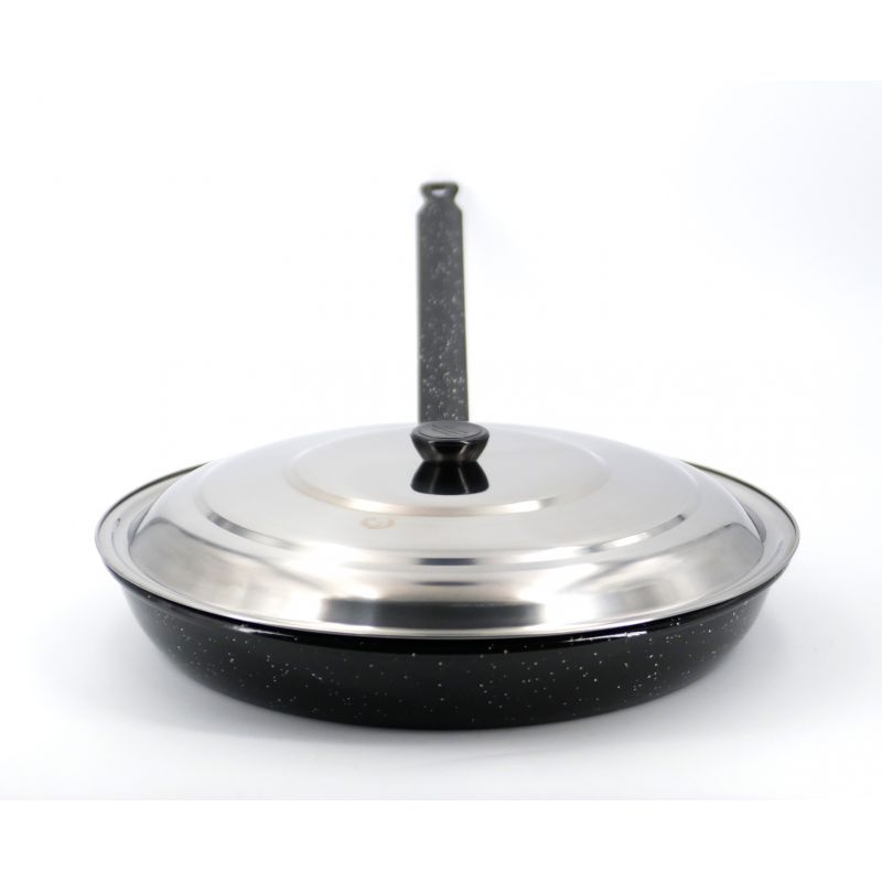 Grande poêle creuse indéformable en acier émaillé. Diamètre 36cm. Convient à tous types de feux dont l'induction.