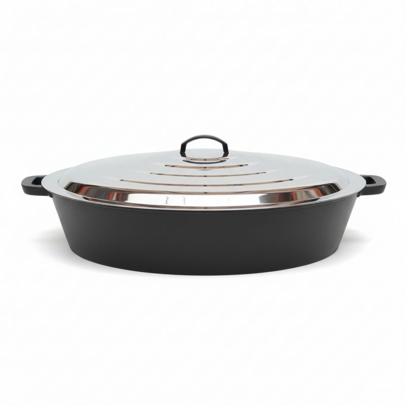 Maxi poêle géante 80 cm – fonte d’aluminium professionnelle (anti-adhésive) + couvercle inox